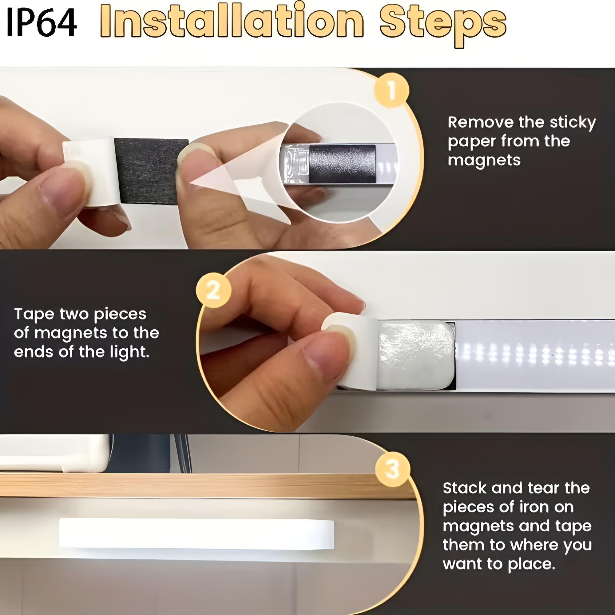 The design philosophy behind this item emphasizes versatility and ease of installation. It provides a departure from permanent light fixtures by utilizing a magnetic attachment system, making it easy to remove for charging or manual use. This lighting system is intended to serve as a staple accessory for those who require automated illumination in a kitchen, bedroom, or RV setting. With its slim profile and dual-color temperature options, it addresses the need for a straightforward tool that performs its intended task with reliability.