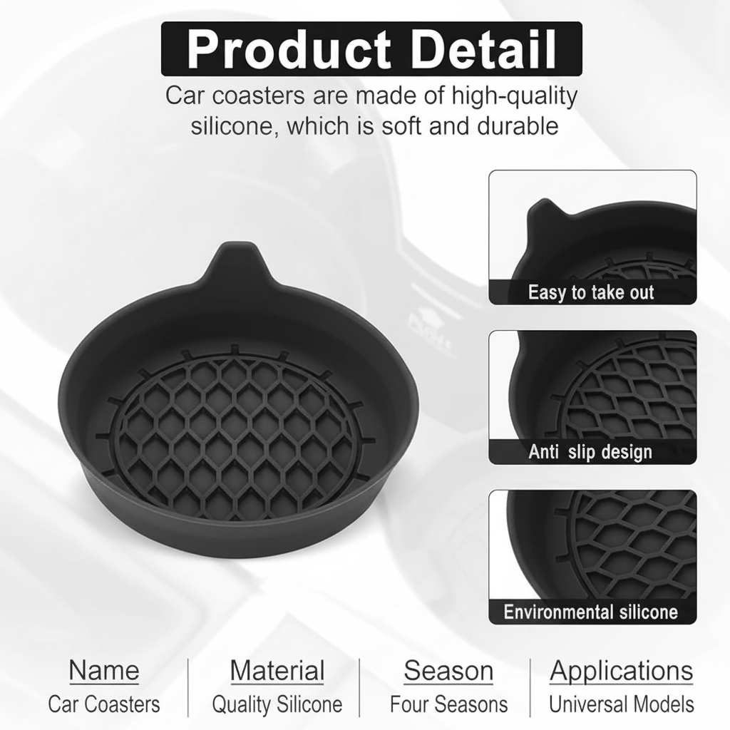 - Stylish and Practical Design: The sleek and minimalist design of these coasters enhances the overall look of your vehicle's interior. Available in a range of colors, including black, grey, pink, and more, they add a look of style while maintaining functionality. These coasters are a practical upgrade to your car’s accessories.