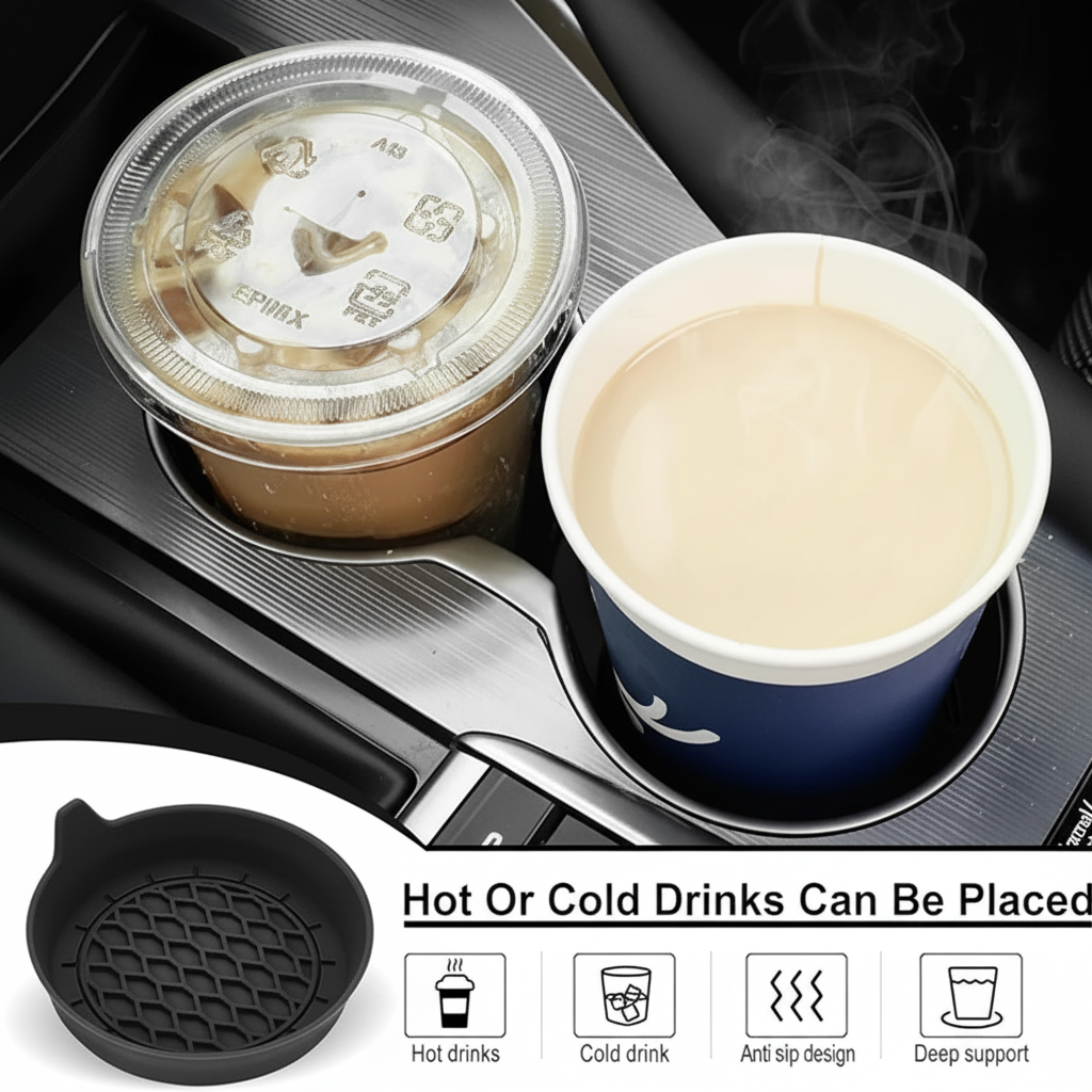 - Protective Function: These silicone coasters are designed not only to keep your cup holders clean but also to prevent them from scratches and damage. The thickened design helps prevent wear and tear on the cup holders, even when driving on bumpy roads. The raised edges on the coasters prevent liquid from spilling over and damaging the interior of your car.