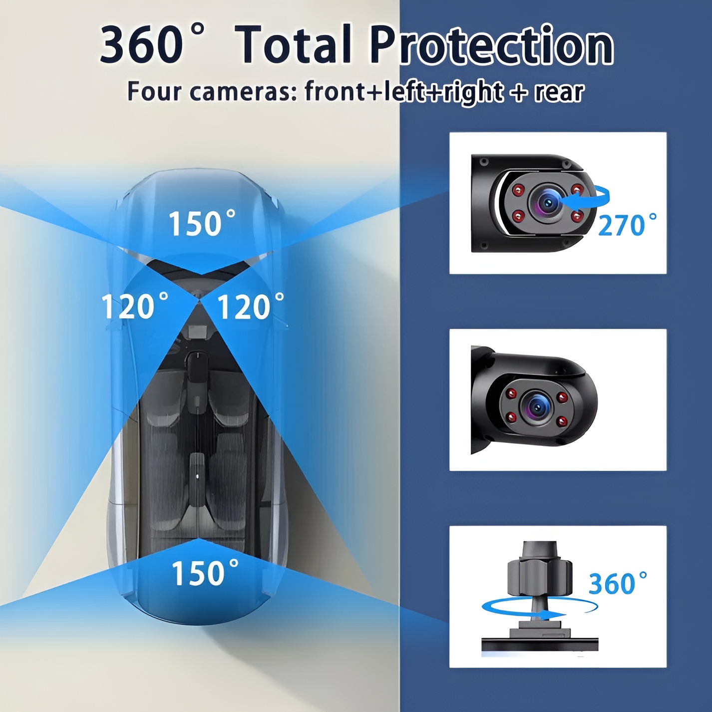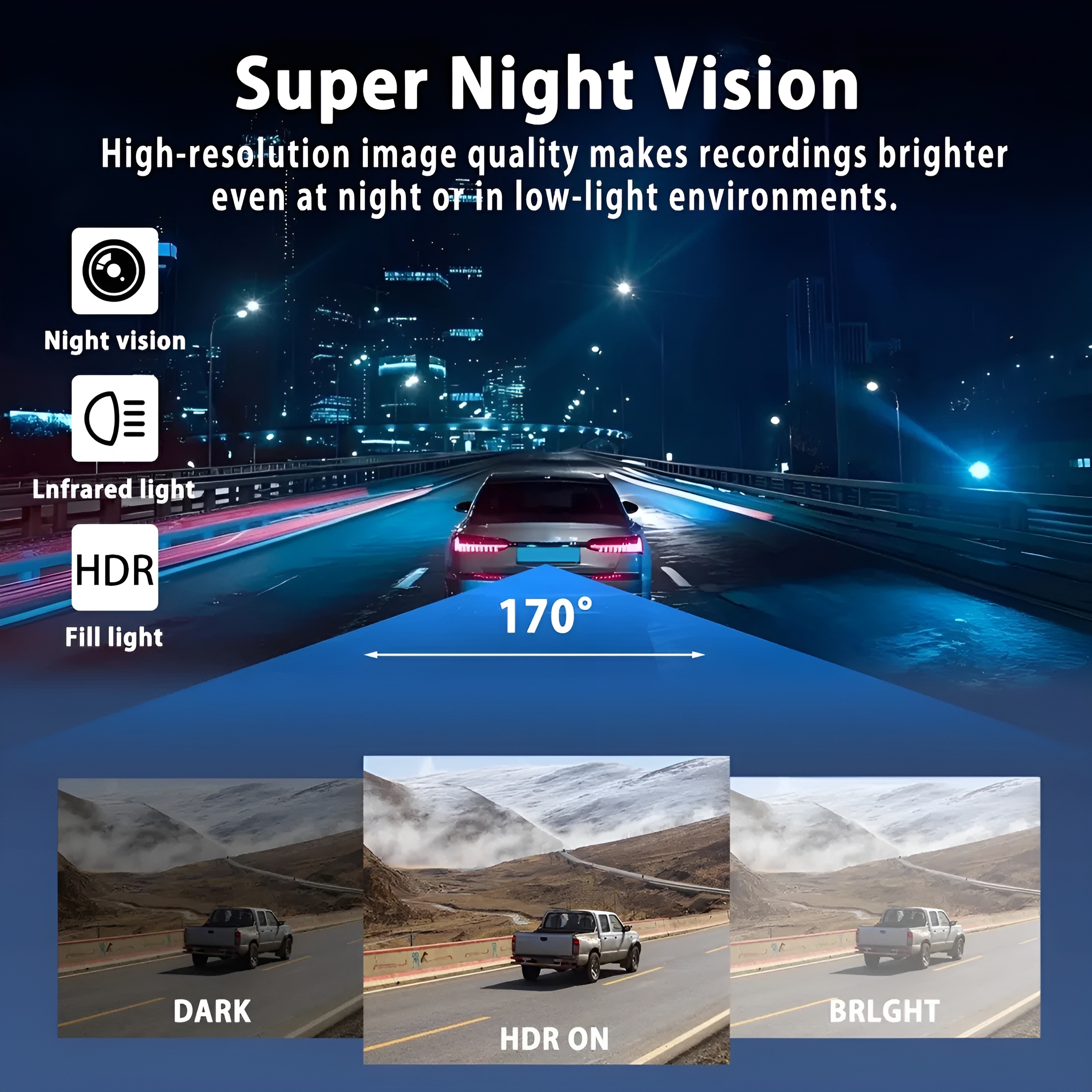 This dash camera system is designed to enhance driving confidence by providing full coverage recording. The multi-camera setup captures different angles simultaneously, helping improve awareness of surroundings. Its high-definition recording ensures clear visuals, while night vision support allows use in low-light environments. The parking mode function adds an extra layer of security by monitoring the vehicle even when stationary. Its compact and practical design allows seamless integration into vehicles without causing distraction. Construction ensures reliable performance over time, while simple controls make it easy to operate. This system offers a dependable combination of safety, convenience recording features for everyday driving needs.
